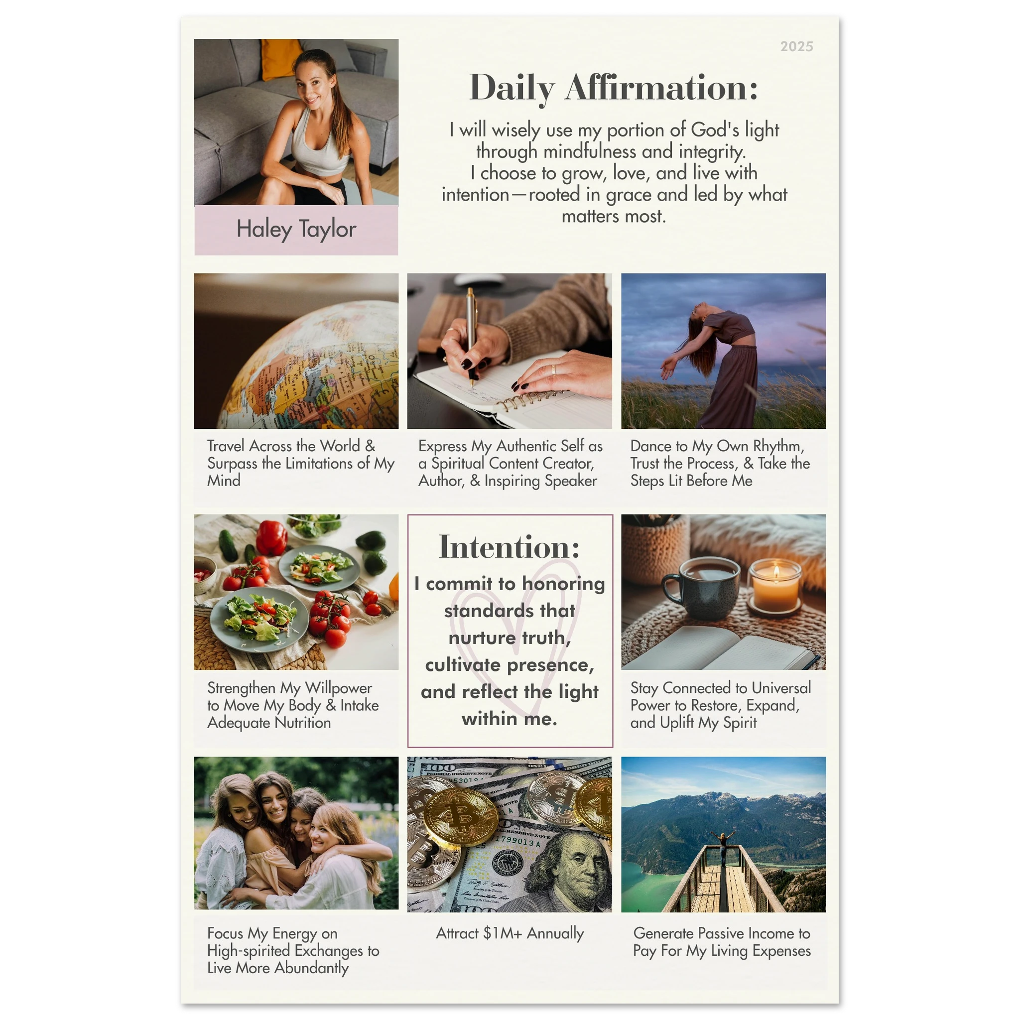 Abundant Living Vision Board Poster — Personalized Photos, Goals & Intentions IV