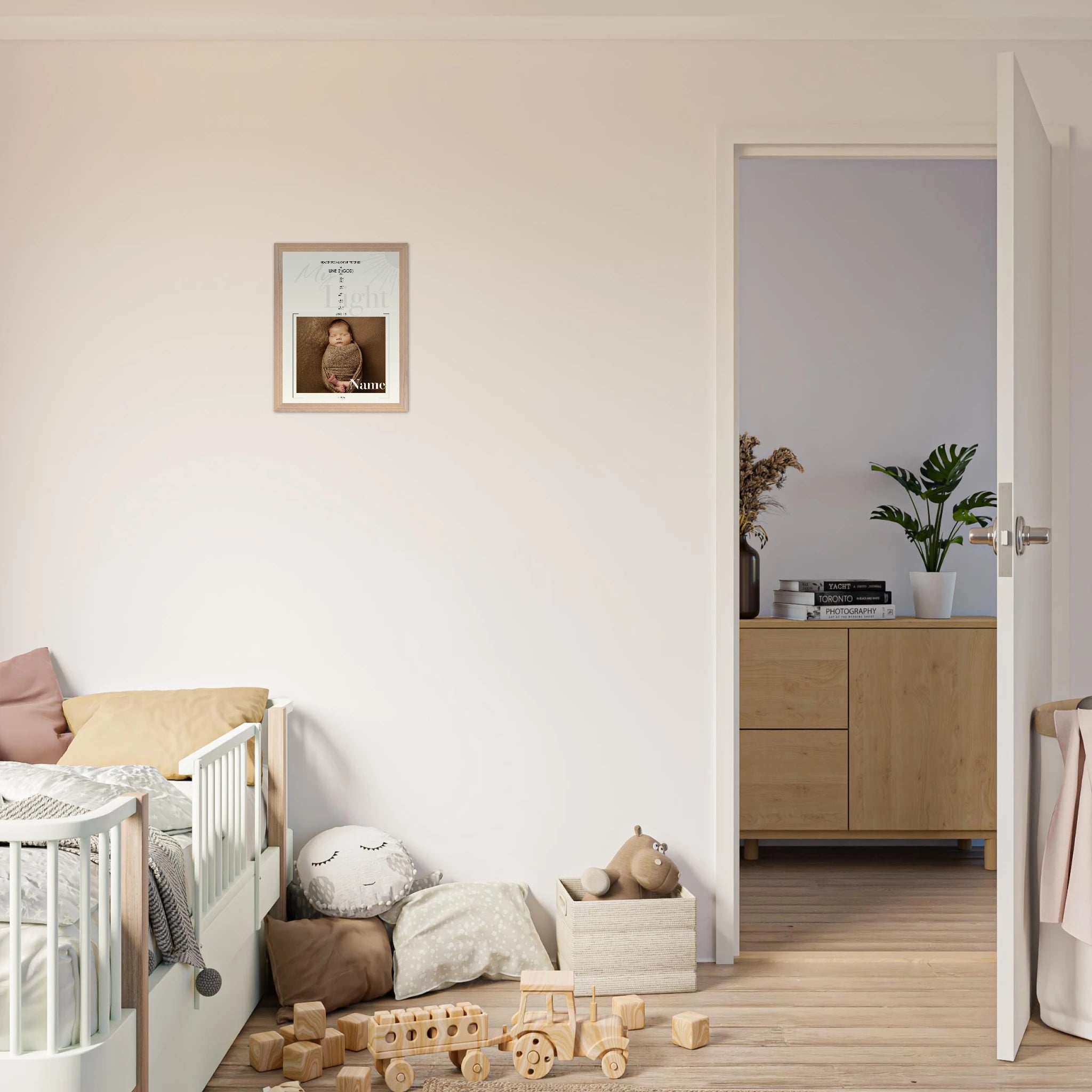 Feel connected to God’s life-giving light with a piece that symbolizes the journey of light—from its cosmic origin to the radiant energy within you. Designed for children’s rooms and sacred spaces, the Light Lineage Personalized Portrait illustrates that we are made of the same light that created everything—an uplifting reminder to lift attention toward the highest light.