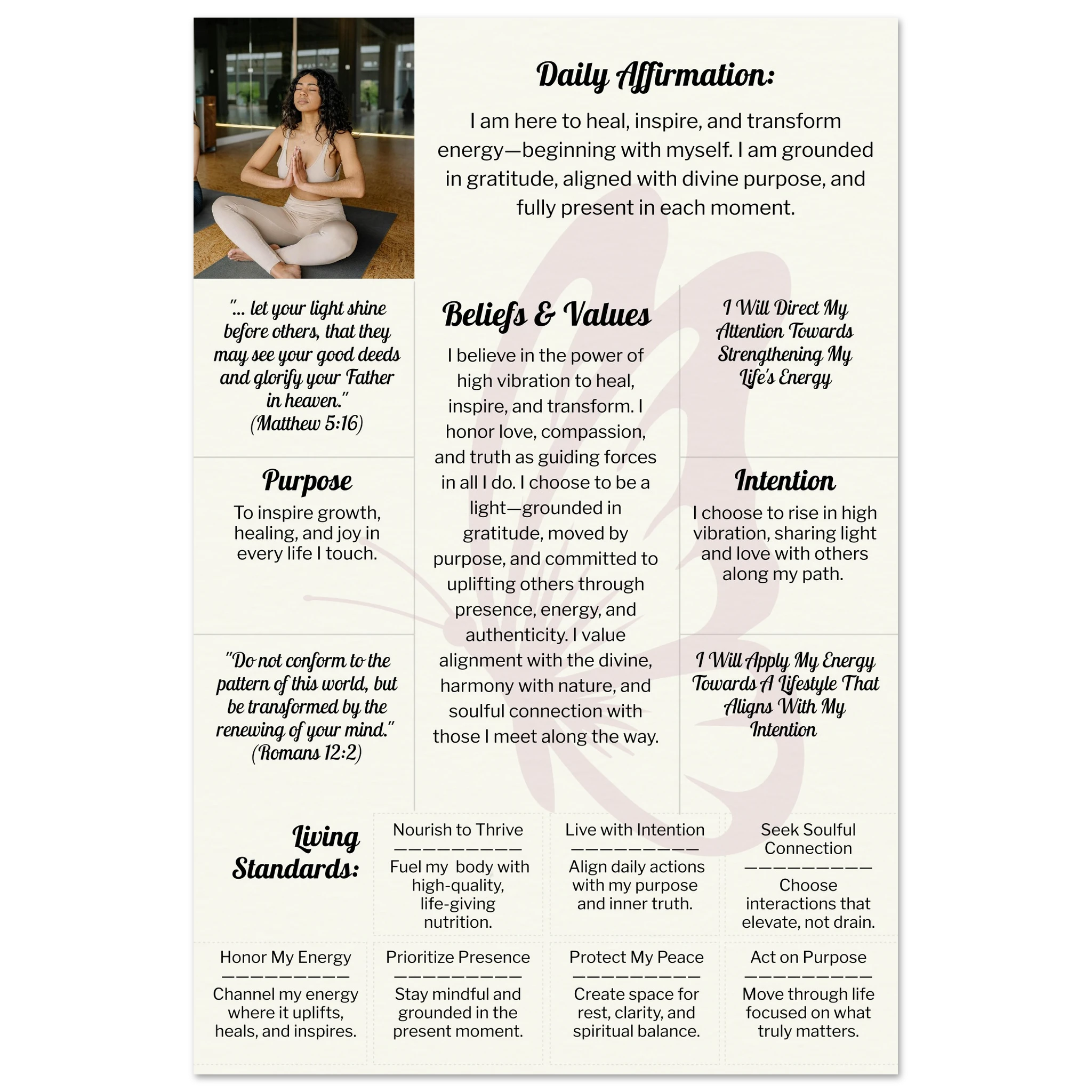 Create a powerful visual anchor for your spiritual journey with the Intentional Living Personalized Poster. Customize spaces for your Creed, Mission, Daily Prompts, Living Standards, Intentions, and Target Energy Sources—plus an optional self-portrait and identity summary. A beautiful daily check-in for clarity, alignment, and growth. 💛