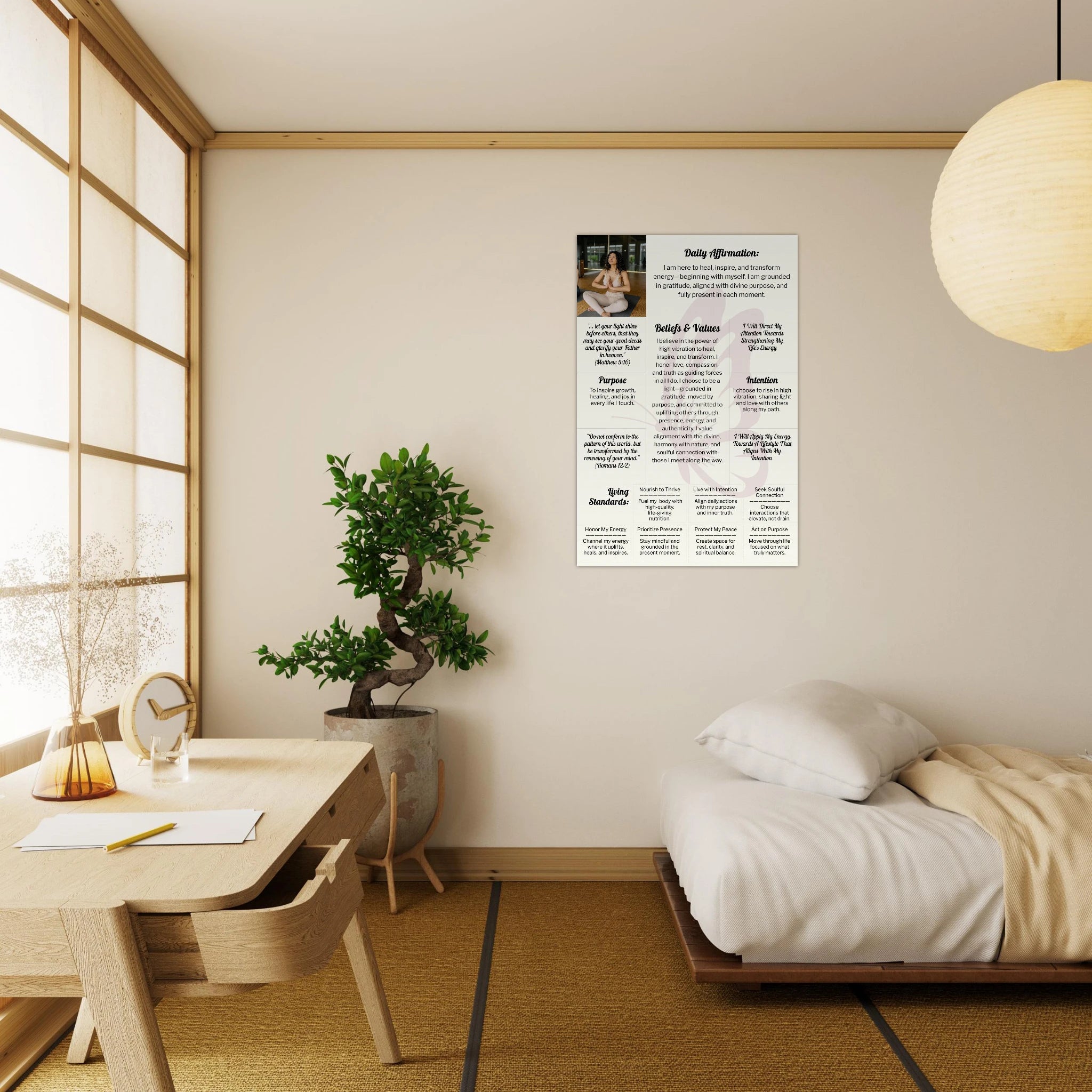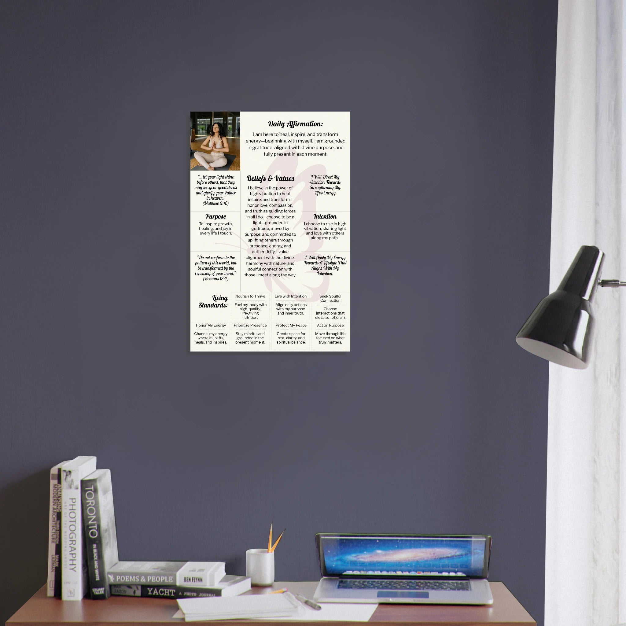This is more than décor—it’s a daily alignment tool. By uniting your identity, intention, and affirmations in one elegant layout, you’ll keep your energy focused and your vision clear.